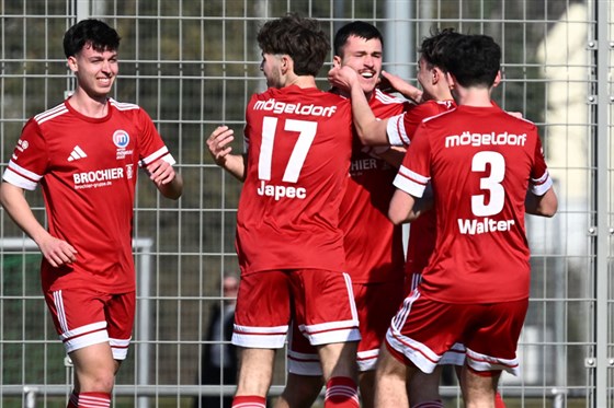 In Überzahl drehten Maximilian Kloos (3.v.l.) und die SpVgg Mögeldorf 2000 das Spiel gegen den Jahn und konnten sich am Ende über einen 4:1-Heimsieg gegen den Favoriten freuen.
