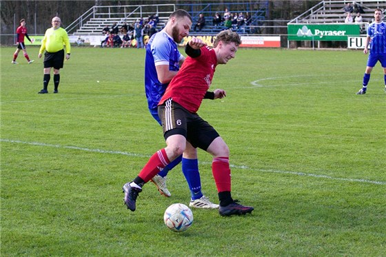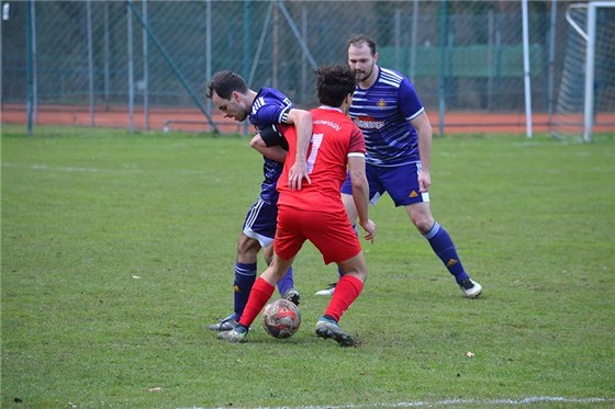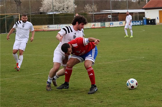Ein spannendes Mittelfeldduell lieferten sich der ASV Buchenbühl (in rot) und die DJK Falke, wobei die Gäste mit 1:0 und 2:1 führten, bevor Pascal Beisenwenger bereits vor der Pause via Doppelpack zum 3:2-Endstand traf und seinem neuen Trainer Francesco Restino beim ersten Auftritt drei Zähler schenkte.