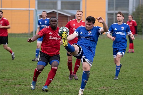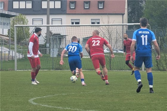 Routinier und Goalgetter Martin Kubecek (Nr. 11, in blau) zeigte seinen Gegenspielern zweimal die Rücklichter und war mit seinem Doppelpack der Garant für den 2:1-Auswärtssieg seines ASN Pfeil-Phönix beim TV Glaishammer. Die Assen geben durch den zweiten Dreier aus den vergangenen drei Begegnungen die Rote Laterne nach sage und schreibe zwölf Spieltagen wieder ab.