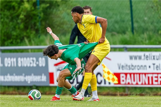 Da auch der ASV Veitsbronn-Siegelsdorf (in grün) zuhause mit dem Post SV (in gelb) durch ein 1:1 die Zähler teilte, kam die Swierczynski-Elf ebenfalls nicht so richtig vom Fleck. Es bleibt bei drei Punkten Vorsprung gegenüber dem FC Bosna.