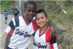 Stolz zeigen diese Jungs aus dem Armenviertel der kolumbianischen Stadt Pereira ihre neuen Trikots....