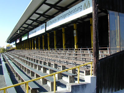 Seit einigen Jahren auch mit Dach: Die Tribüne auf der Gegengerade, die lange Jahre wie ein hohler Zahn das Stadion überragte.