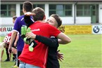 Große Freude nach dem 7:1-Heimsieg gegen die SG TSV Engelmannsreuth/SpVgg Bayreuth II beim Hochstadter Team von hinten links: Lilly Schüpferling, Elisa Dittrich, Katha Zillig, Sophie Lapczyna, Anna Ultsch, Anna Rübensaal, Pauline Deuber und Trainer Matthias Wendel; in der