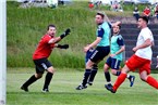 Stadtlauringens Simon Neubert umdribbelt Steinbachs Keeper Jason Kürschner, schießt dann aber vorbei.