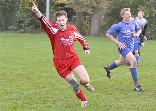 "Es Müllerte wieder!" Jubel des Gemündaer Topstürmers im Spiel den TSV Gleußen. |