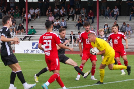 Bei dieser Szene aus dem Hinspiel packte FC-Keeper Luis Krempel sicher zu.