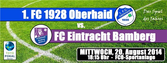 Am morgigen Mittwoch, den 20.08.2014 um 18.15 Uhr empfängt der Bezirksligist in der 2. Runde des BFV-Verbandspokals keinen Geringeren wie den Regionalligisten FC Eintracht Bamberg. Trotz der bereits laufenden Saison mit einem nicht gerade leichten Auftaktprogramm sind die Oberhaider Spieler heiß auf das „Spiel des Jahres“. Trainer