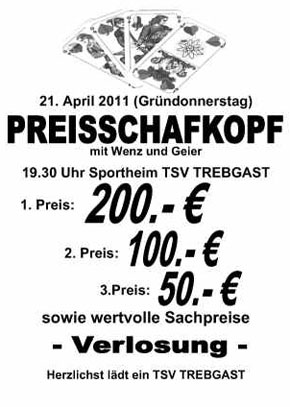 Preisschafkopf am Gründonnerstag mit Wenz und Geier