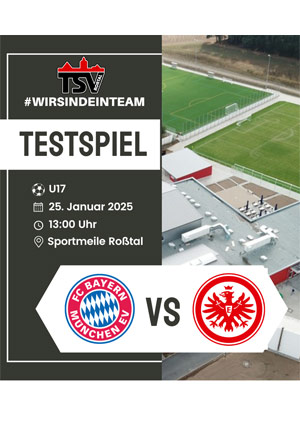 Jugendfußball auf allerhöchstem Niveau gibt es am Samstag, den 25.01.2025 an der Roßtaler Sportmeile zu sehen, wenn sich ab 13 Uhr die U17-Teams des FC Bayern München und der Frankfurter Eintracht in einem Testspiel begegnen. In beiden Kadern finden sich zahlreiche DFB-Junioren-Nationalspieler und in beiden Trainerstäben reichlich Bundesligaerfahrung. So stand auf Seiten der Münchner Torwart-Trainer Simon Jentzsch 274 Mal in der Bundesliga auf dem Platz, auf der Gegenseite steht ihm Frankfurts Co-Trainer André Hahn mit 250 Bundesligapartien in nichts nach.